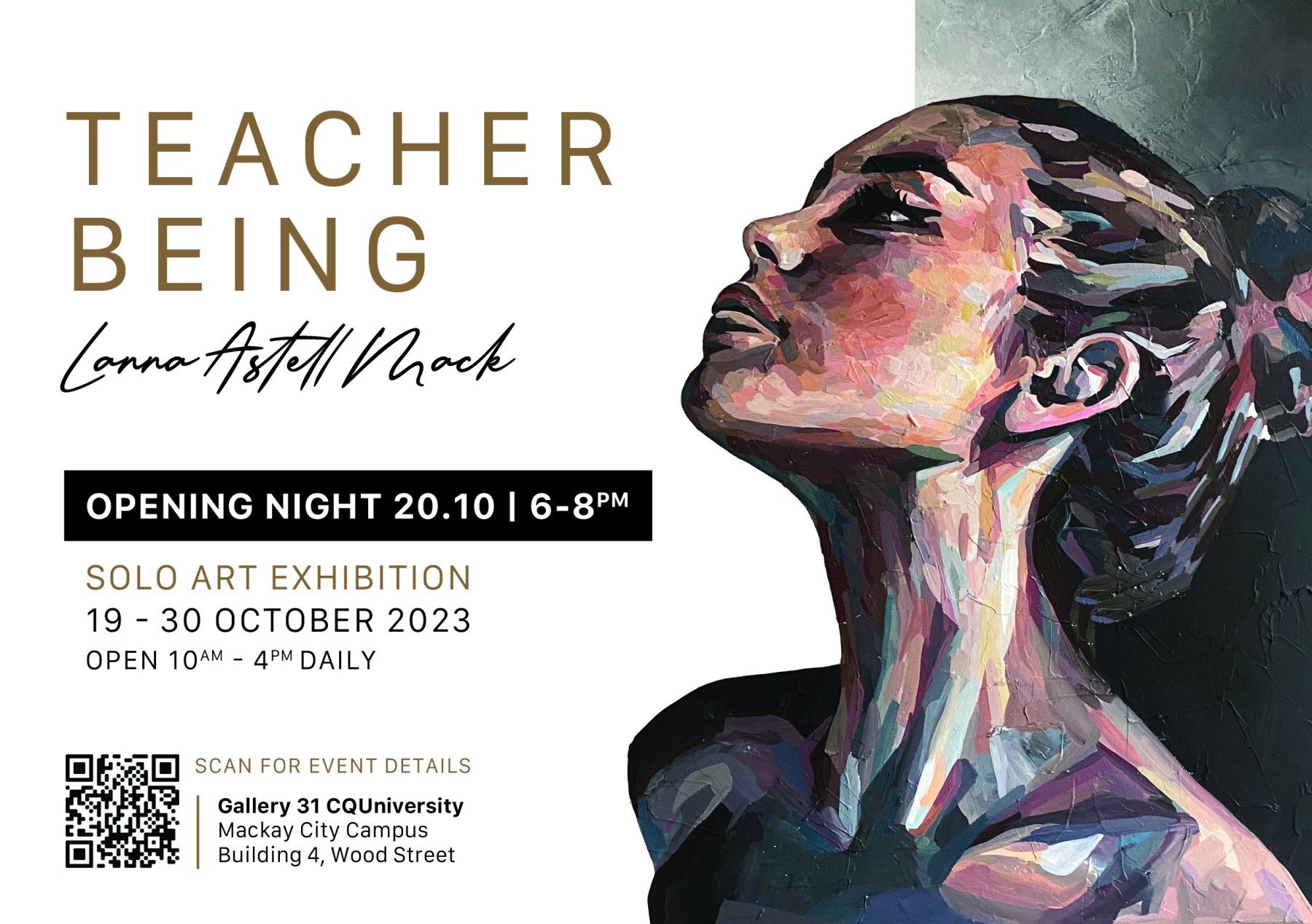 Teacher Being Art Exhibition by local artist and educator Lanna Astell Mack will run from the 19th- 30th of October at CQU’s Gallery 31, 10am-4pm daily.