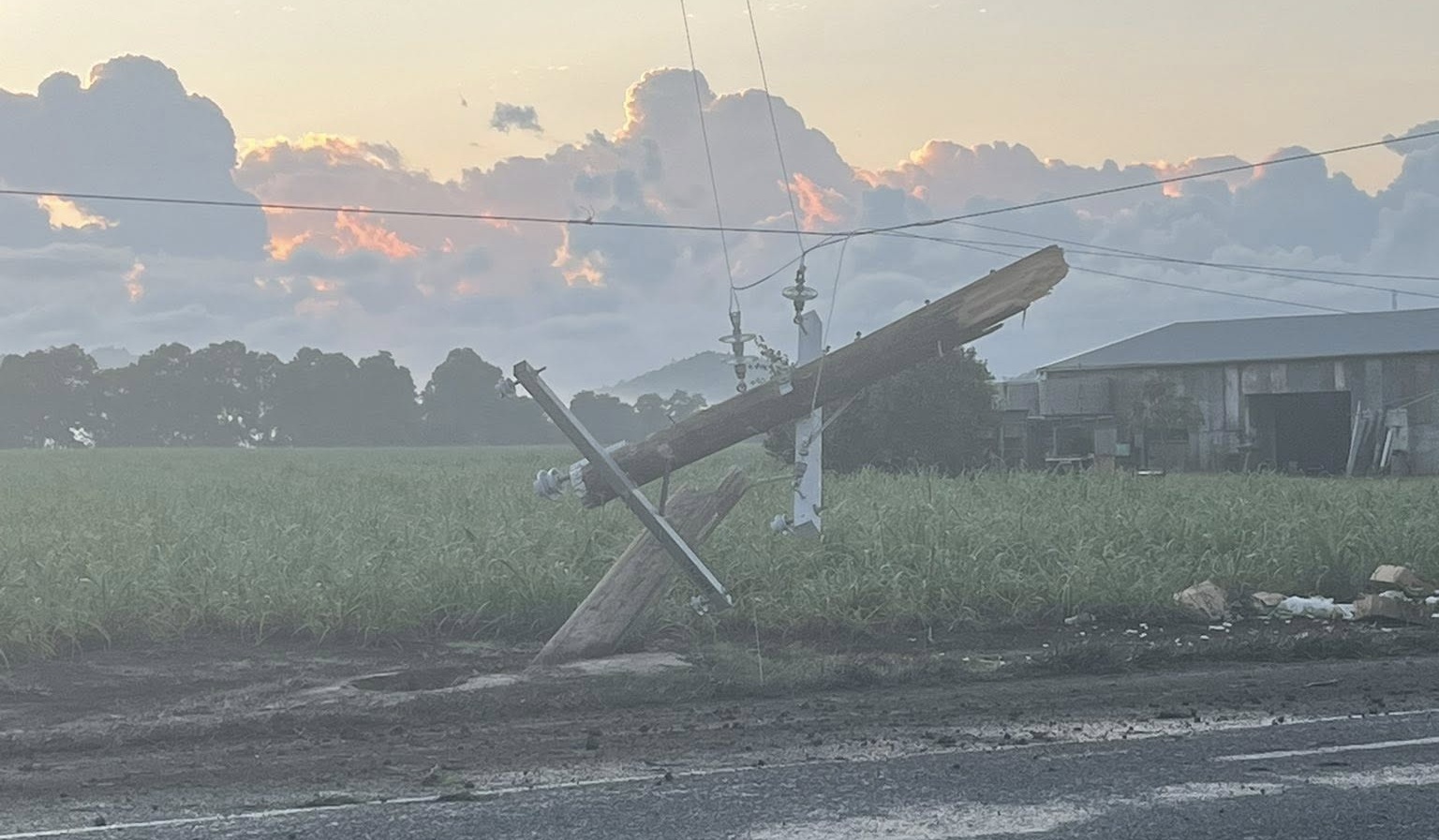 Ergon crews were called to Myrtlevale just after 4am to replace the power pole, which has snapped in half.