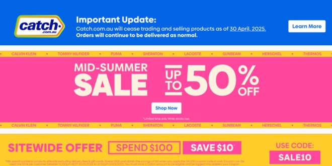 End of an Era With Online Aussie Retailer Catch Closing Down January 22, 2025 9:38 am in Entertainment by Adam ChapmanBig news as Wesfarmers has revealed that online Aussie retail giant Catch.com.au will be closing.